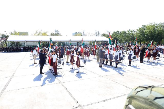 Durante el evento, se hizo entrega del lábaro patrio a las y los directores de la Escuela Preparatoria Federalizada No. 1 de Ciudad Victoria; de la Escuela Preparatoria Federalizada No. 2 de Ciudad Victoria; de la Escuela Preparatoria Federalizada No. 3 de Ciudad Victoria; del CBTIS 236 de Ciudad Victoria y de la Secundaria Técnica No. 71 de Ciudad Victoria, y posteriormente, miembros de las Fuerzas Armadas hicieron entrega de banderas a 27 escoltas de escuelas secundarias y preparatorias.