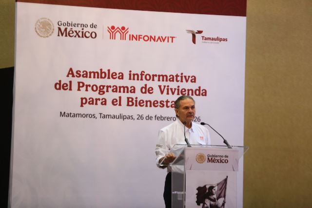 Matamoros, Tamaulipas (26-Febrero-2026).- El director general del Infonavit, Octavio Romero Oropeza, hizo un reconocimiento al gobernador Américo Villarreal Anaya por lograr que Tamaulipas sea hoy el estado que más vivienda tiene ya en construcción y por firmar el convenio que permitirá a las y los trabajadores del Gobierno del Estado y del magisterio acceder a una casa del programa Vivienda para el Bienestar.