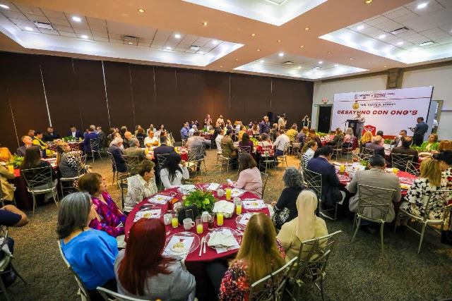 Reynosa, Tam (26-Febrero-2026).- El Alcalde de Reynosa, Carlos Peña Ortiz, en compañía de su esposa Alejandra Yelitza Garza, Presidenta del Voluntariado DIF-Reynosa; de la Senadora de la República, Maki Esther Ortiz Domínguez, y del Diputado Local Juan Carlos Zertuche Romero, se reunió en un desayuno con representantes de las Organizaciones No Gubernamentales de esta ciudad.