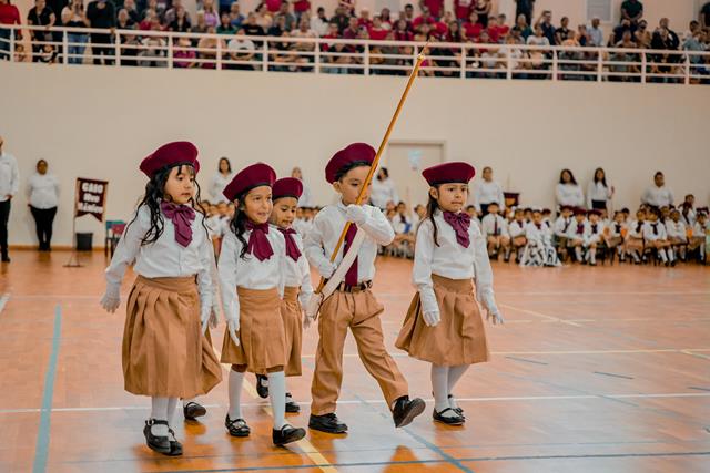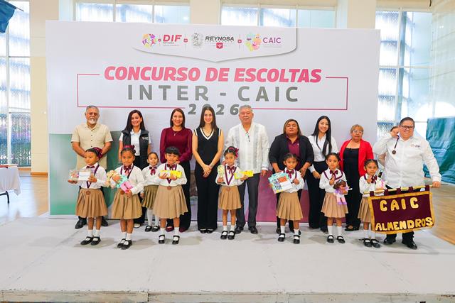Reynosa, Tam (27-Febrero-2026).- Con el objetivo de fomentar en alumnos de educación básica el amor y respeto a los símbolos patrios, el Sistema DIF-Reynosa que preside Carlos Luis Peña Garza, llevó a cabo el Concurso de Escoltas Escolares Inter CAIC 2026, en la categoría de preescolar, con la participación de 86 alumnos de 12 Centros de Atención Infantil Comunitarios.