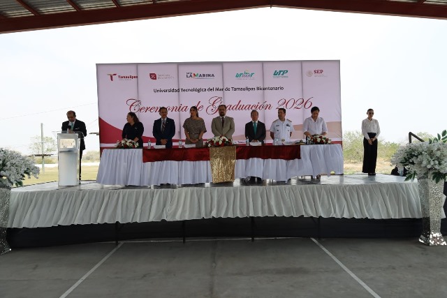 Soto La Marina, Tamaulipas (28-Febrero-2026).- La Universidad Tecnológica del Mar de Tamaulipas Bicentenario (UTMART) celebró la ceremonia de graduación de la Generación 2026, acto presidido por Igor Crespo Solís, subsecretario de Educación Media Superior y Superior de Tamaulipas, quien reconoció el esfuerzo de las y los 64 estudiantes que culminaron su formación profesional.