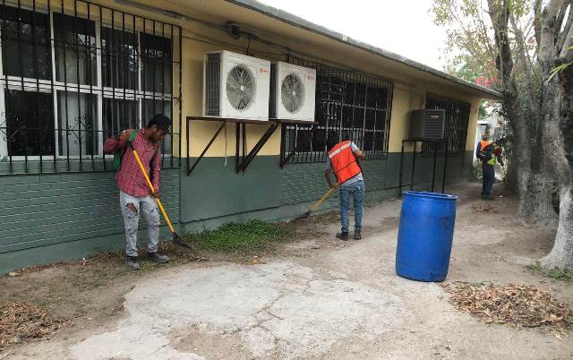 – Limpieza en la escuela telesecundaria Lucio Blanco del ejido El Guerreño.
