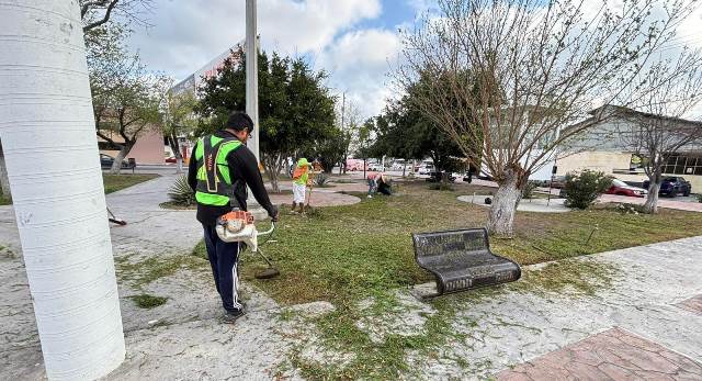 – Limpieza en la plaza Benito Juárez, ubicada en la calle Lerdo de Tejada, en la colonia Bella Vista.