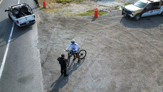 Jiménez, Tamaulipas (9-Marzo-2026).- A través de cordillera, personal de la Guardia Estatal de Apoyo Carretero se encuentra brindando seguridad a un ciclista participante del movimiento ‘’Rodando por Tamaulipas’’.
