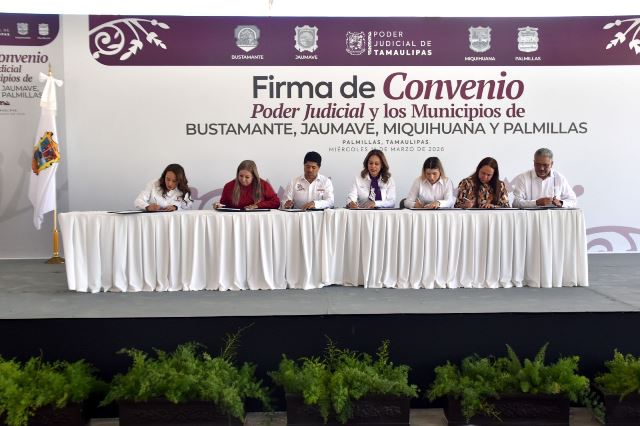 Palmillas, Tamaulipas (13-Marzo-2026).- En un esfuerzo por fortalecer la coordinación institucional y ampliar el acceso a la justicia en las distintas regiones del estado, el Instituto de Defensoría Pública del Estado de Tamaulipas (IDPET) participó en la firma de un Convenio de Colaboración con municipios de la región del altiplano, con el propósito de acercar los servicios de asesoría y representación jurídica gratuita a la población.