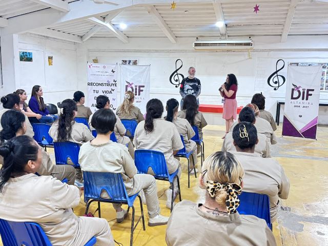 Altamira, Tamaulipas (13-Marzo-2026).- Como parte de las actividades conmemorativas del Día Internacional de la Mujer, el Centro de Ejecución de Sanciones (CEDES) del municipio de Altamira recibió a integrantes del voluntariado del Ayuntamiento, quienes impartieron la conferencia “Reconstruye tu vida desde adentro”.