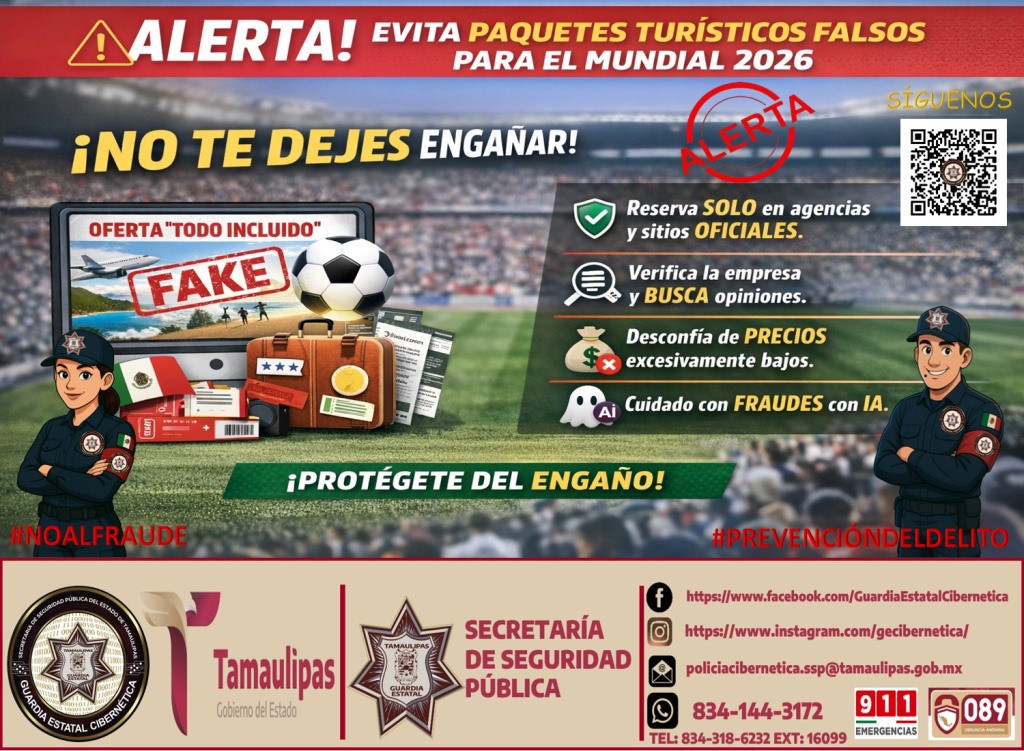 (16-Marzo-2026).- ⚠️ Alerta: Fraudes en paquetes turísticos para el Mundial 2026