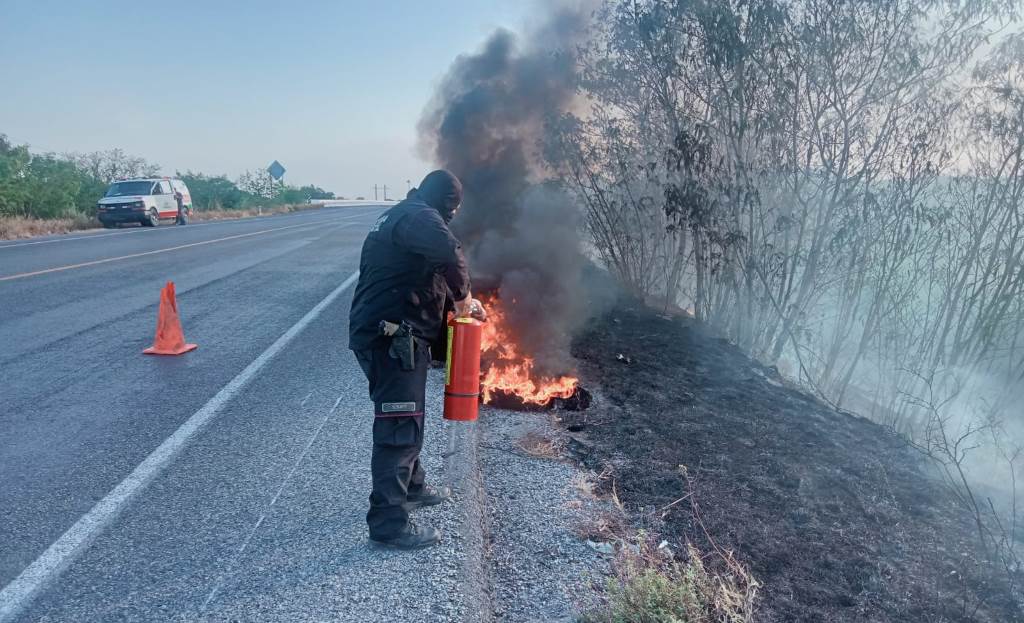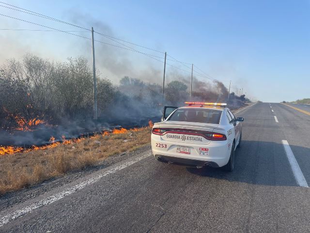 Padilla, Tamaulipas (17-Marzo-2026).- Personal de la Guardia Estatal sofocó un incendio de pastizal registrado en el kilómetro 37 de la Carretera Federal 101, en el tramo que conecta a Ciudad Victoria con Matamoros.