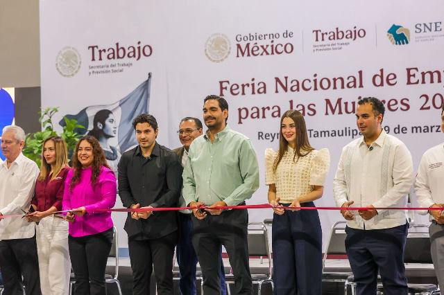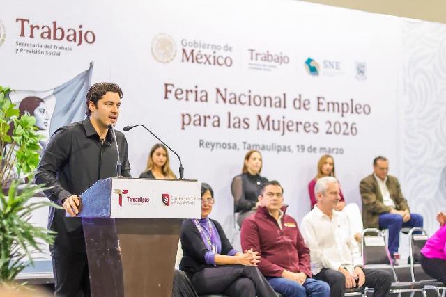 Reynosa, Tam (19-Marzo-2026).- El Presidente Municipal Carlos Peña Ortiz inauguró junto con el Secretario de Trabajo y Previsión Social de Tamaulipas, Luis Gerardo Illoldi Reyes, la Feria Nacional de Empleo para las Mujeres 2026, un evento en el que participaron los Alcaldes: de Camargo, Ernestina Perales Ortiz; de Miguel Alemán, Ramiro Cortés Barrera, y que busca conjuntar oportunidades para el desarrollo profesional y laboral de las mujeres de la región.