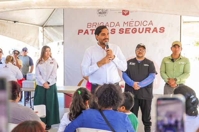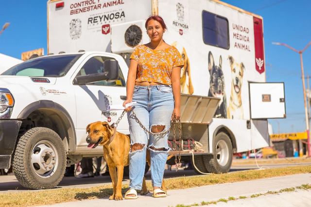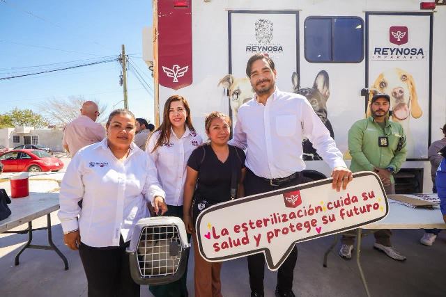 Reynosa, Tam (20-Marzo-2026).- La brigada médico veterinaria «Patitas Seguras» encabezada por el Presidente Municipal Carlos Peña Ortiz se llevó a cabo en la plaza pública del fraccionamiento San Valentín, a donde acudió un amplio número de ciudadanos responsables con la vida animal.