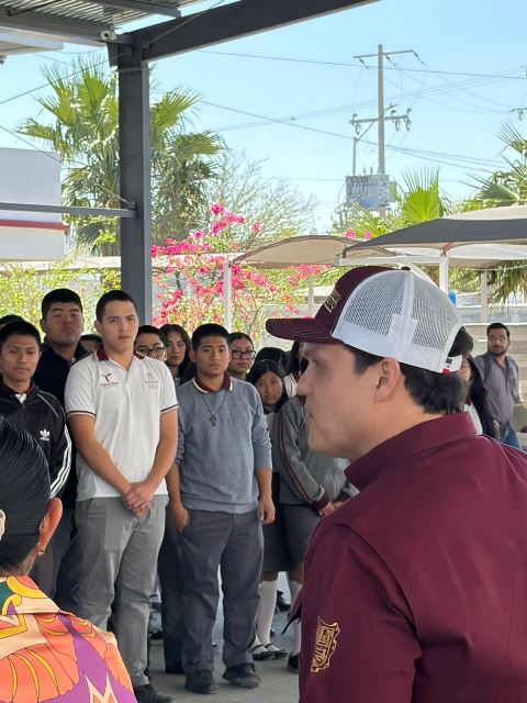 Reynosa, Tam (20-Marzo-2026).- Durante la tarde de este viernes 20 de marzo, el presidente de la junta de Gobierno, Humberto Prieto Herrera, asistió a las instalaciones del COBAT 22 en Reynosa, donde sostuvo un encuentro con los jóvenes respondiendo y aclarando algunas dudas sobre el poder legislativo.
