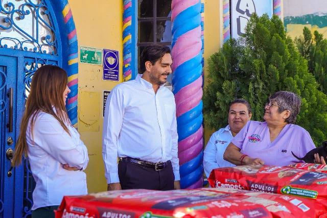 Reynosa, Tam (22-Marzo-2026).- Para apoyar a quienes ofrecen su corazón por los animales más vulnerables en Reynosa, el Presidente Municipal Carlos Peña Ortiz entregó una donación de más de 2 Toneladas de alimento para perro a la Fundación de Rescate y Adopción de Mascotas, FRYAM A. C., en la colonia Fuentes Lomas.