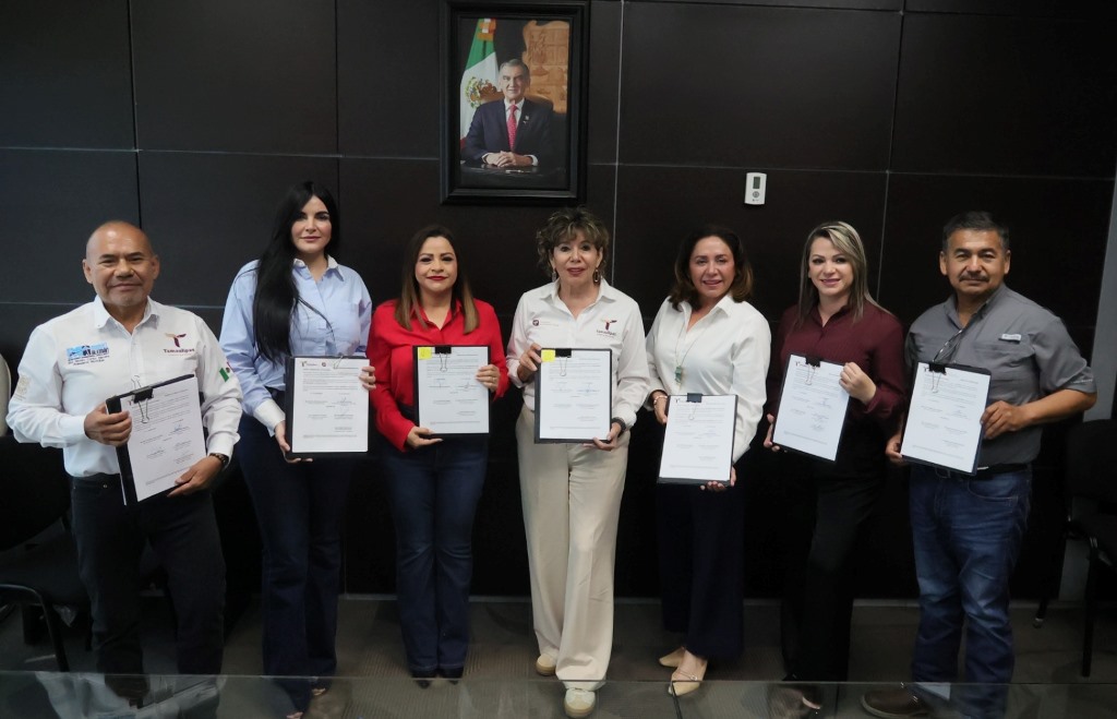 Ciudad Victoria, Tamaulipas (24-Marzo-2026).- Con el objeto de impulsar actividades y acciones de mejoramiento en los Parques de Bienestar ubicados en los municipios de Gustavo Díaz Ordaz, Méndez, Mier, Miguel Alemán, Nuevo Laredo, San Fernando y Xicoténcatl, la secretaria de Bienestar Social Silvia Casas González, firmó un convenio de colaboración con las y los alcaldes de dichos municipios, quienes manifestaron su compromiso de trabajar unidos a favor de sus comunidades para favorecer la cohesión y el fortalecimiento del tejido social.