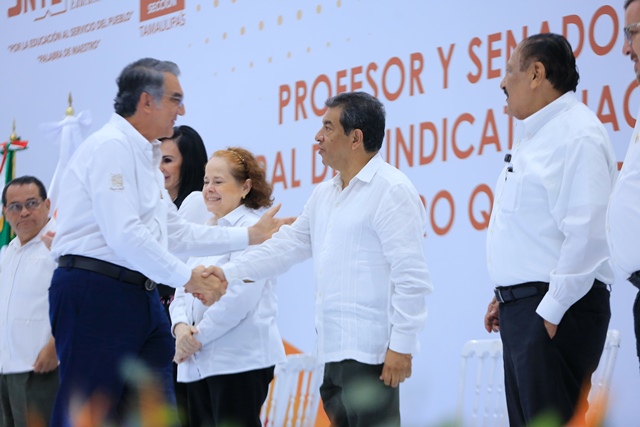 En el evento, el mandatario tamaulipeco recibió el reconocimiento de parte del Comité Directivo Seccional del SNTE por “impulsar políticas y acciones que fortalecen a los trabajadores de la Educación en Tamaulipas, reconociendo en los docentes el motor de transformación social y el futuro de nuestro Estado. Gracias por creer en la educación como el camino hacia un mejor Tamaulipas”.