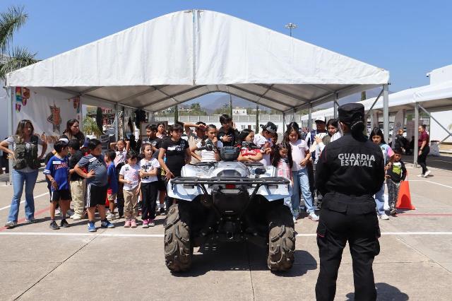 Entre las actividades realizadas destacan el abordaje de vehículos oficiales, dinámicas en una réplica de casa táctica y el manejo de drones por parte de la FEGE; además de demostraciones de adiestramiento canófilo, carreras en pista interactiva con Tránsito Estatal, trivias informativas con el área de Reclutamiento, ejercicios sobre ciberseguridad con la Guardia Estatal Cibernética y actividades físicas dirigidas por la Guardia Estatal de Género.