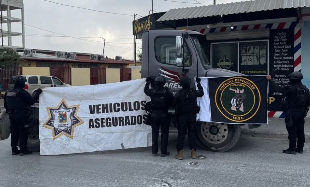 Reynosa, Tamaulipas (29-Marzo-2026).- Personal de las Fuerzas Especiales de la Guardia Estatal (FEGE) aseguró un tractocamión presuntamente utilizado para dañar infraestructura del sistema de videovigilancia, tras atender un reporte emitido por el C5.