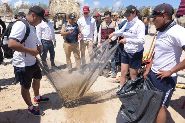 Las labores se realizan de manera coordinada con brigadas de Empleo Temporal de la SEDUMA, integradas por habitantes de La Pesca capacitados por la Procuraduría Federal de Protección al Ambiente (PROFEPA) en el manejo de residuos de hidrocarburo. A estas acciones se suman personal de la Secretaría de Bienestar y elementos de la Secretaría de Marina, quienes llevaron a cabo un barrido manual, para retirar el material detectado.