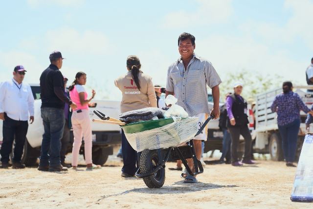 Durante esta jornada se distribuyeron despensas, artículos para el hogar, electrodomésticos, herramientas, carretillas, tinacos, bases de cama, colchones, láminas, máquinas de coser y apoyos de movilidad, entre otros.