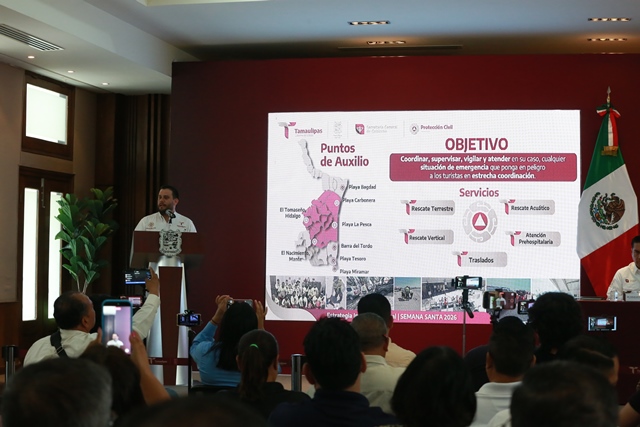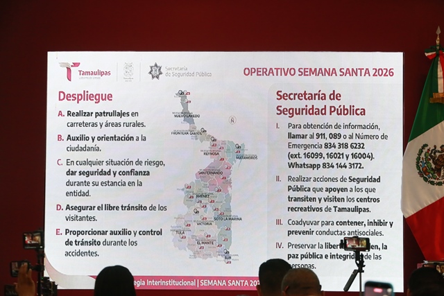 Ciudad Victoria, Tamaulipas (31-Marzo-2026).- Tamaulipas cuenta con un amplio despliegue para brindar seguridad, asistencia y la mejor atención a las y los turistas que arriban a nuestro estado por el periodo vacacional de Semana Santa, a fin de que disfruten y gocen de la mejor manera su estancia en territorio tamaulipeco, afirmó el gobernador Américo Villarreal Anaya.