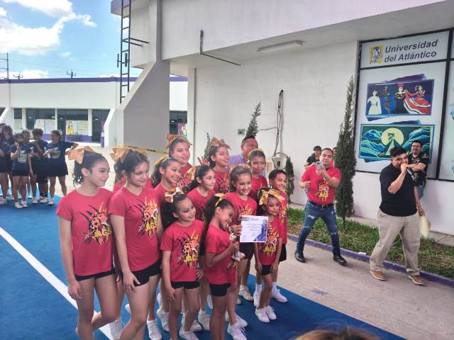 Reynosa, Tam (1-Abril-2026).- El Alcalde Carlos Peña Ortiz felicitó al equipo de gimnasia IMD Xtreme Jags, quienes obtuvieron el primer lugar en la Copa UDA de la Universidad del Atlántico, competencia previa a un importante campeonato internacional que se llevará a cabo en Puerto Vallarta.