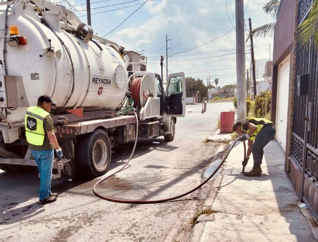 Reynosa, Tam (2-Abril-2026).- Como parte del programa permanente de mantenimiento preventivo y correctivo, cuadrillas de la COMAPA de Reynosa se encuentran desplegadas en diversos sectores de la ciudad realizando trabajos de desazolve y limpieza de la red de alcantarillado sanitario.