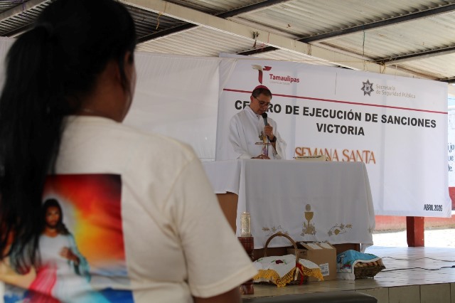 Ciudad Victoria, Tamaulipas (3-Abril-2026).- En el marco de la conmemoración de la Semana Santa, un total de 250 Personas Privadas de la Libertad (PPLs) del Centro de Ejecución de Sanciones (CEDES) Victoria participaron en actividades religiosas organizadas al interior del inmueble.