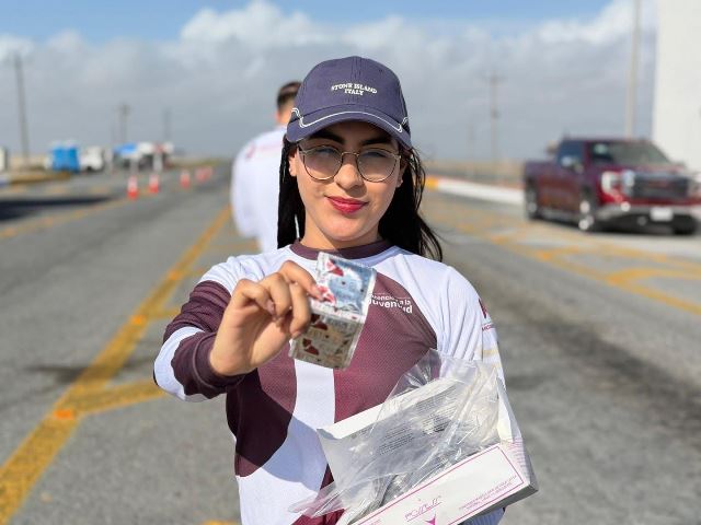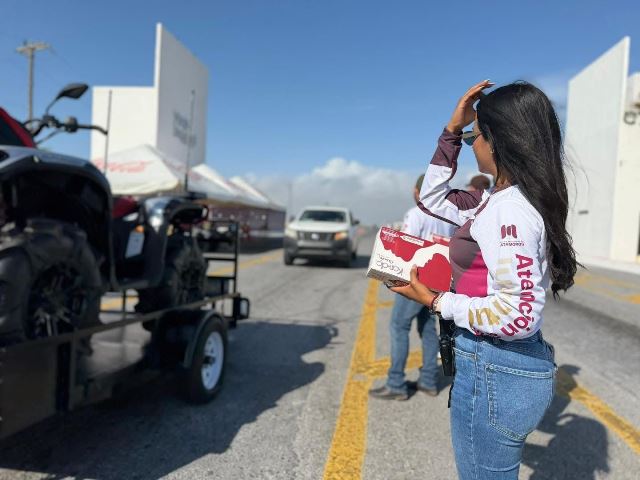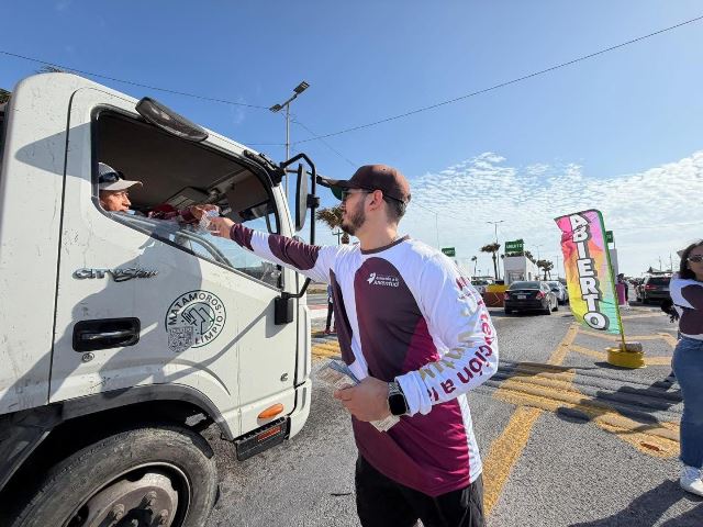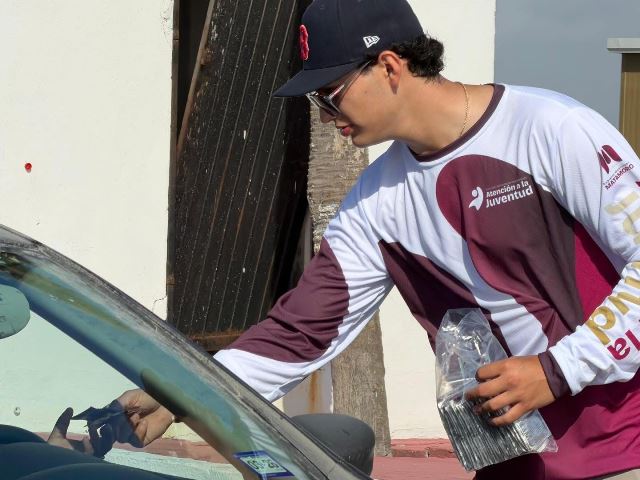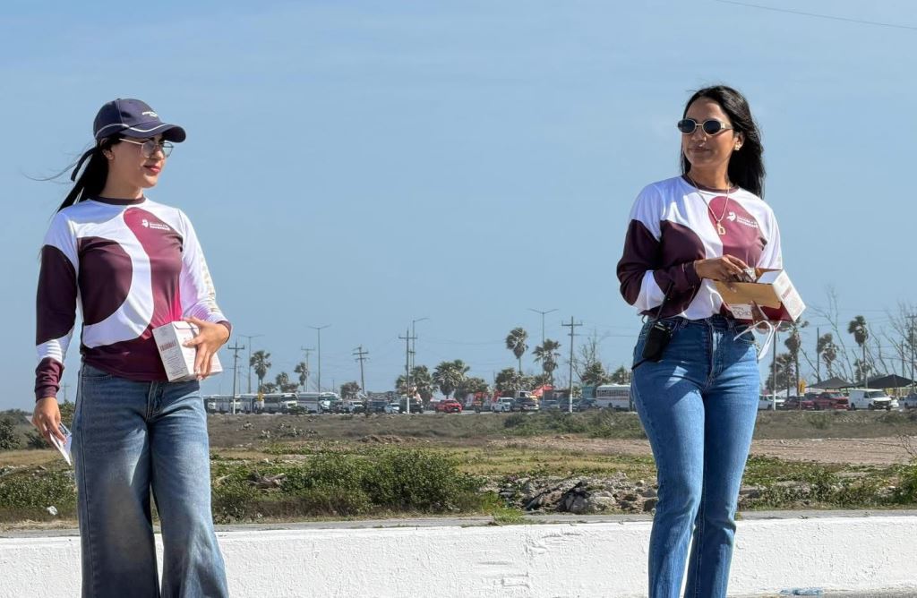 MATAMOROS.- Jóvenes del Instituto Municipal de Atención a la Juventud llevan a cabo una campaña de prevención en la entrada de la Playa Bagdad, donde se encuentran entregando trípticos informativos y preservativos a los visitantes.
