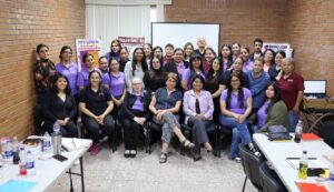 Junto a la botarga «Cory», que forma parte de las actividades, la Directora General, Gabriela Rosas Blanco, así como personal del organismo de asistencia social, entregan trípticos con información de todos los programas y servicios que se ofrecen en DIF.