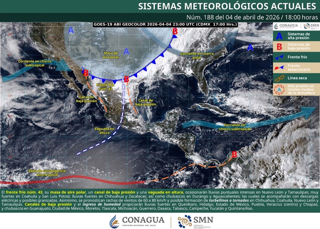 Reynosa, Tam (4-Abril-2026).- Ante la probable llegada de tormentas derivadas de condiciones climatológicas derivadas del Frente Frío Número 43, el Alcalde Carlos Peña Ortiz instruyó a la Coordinación de Protección Civil y Bomberos a estar pendiente de los cambios que presente el estado del tiempo y de los llamados de la población, en relación a las lluvias esperadas.