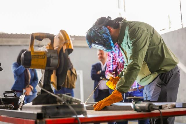 El Alcalde, acompañado por el Secretario de Bienestar Social, Héctor Alejandro Olivares Zavala y funcionarios municipales, demostró habilidad en la soldadura eléctrica y destacó la labor de rehabilitación del Centro y que a los jóvenes se les de instrucción para lograr sobresalir después de su rehabilitación.