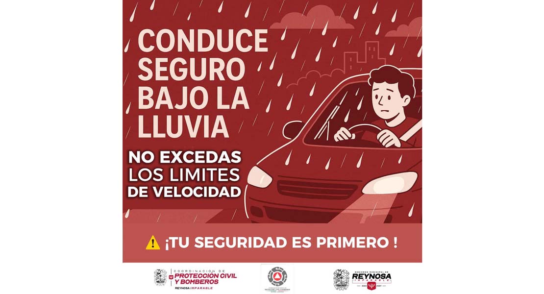 «CONDUCE SEGURO BAJO LA LLUVIA, NO EXCEDAS LOS LIMITES DE VELOCIDAD», es el mensaje que queremos compartir a través de la Coordinación de Protección Civil y Bomberos con todos los conductores de nuestra ciudad.