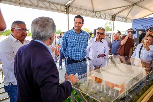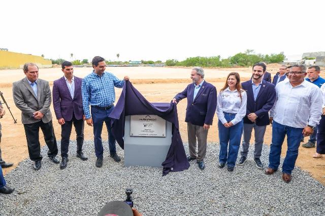 Reynosa, Tam (13-Abril-2026).- El Presidente Municipal Carlos Peña Ortiz destacó la importancia de la inversión en Multicomercial Reynosa, de Cien Grupo Inmobiliario que encabeza Estiben Handal Dabdoub, con quien develó la primera piedra del nuevo concepto de inversión productiva que se desarrolla en el fraccionamiento Villas de Esmeralda.