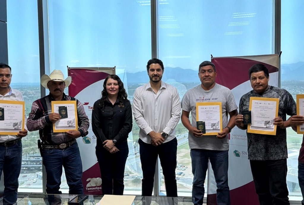 Ciudad Victoria, Tamaulipas (14-Abril-2026).- En un acto que fortalece la movilidad laboral internacional, trabajadoras y trabajadores tamaulipecos recibieron sus sobres de viaje para integrarse al Programa de Trabajadores Agrícolas Temporales (PTAT) en Canadá, como parte de las estrategias de vinculación laboral que impulsa el Servicio Nacional de Empleo Tamaulipas.