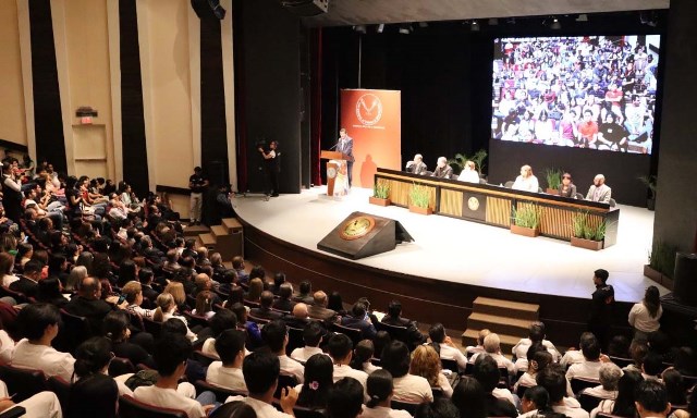 Entre aplausos de estudiantes y profesores, el rector convocó a la comunidad universitaria a continuar fortaleciendo la formación integral de los estudiantes, enfatizando que la calidad educativa debe reflejarse en beneficios concretos para la sociedad.