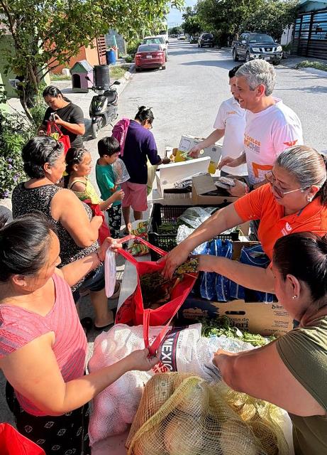 Reynosa, Tamaulipas (17-Abril-2026).- El diputado local Juan Carlos Zertuche, de Movimiento Ciudadano, llevó el programa Mercadito Naranja al fraccionamiento Campanario, beneficiando a decenas de familias con la entrega de frutas y verduras, así como atención cercana y directa.