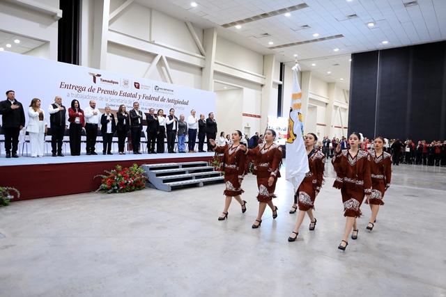 Acompañado por Marggid Rodríguez Avendaño, coordinador de IMSS-Bienestar en Tamaulipas y dirigentes sindicales, el jefe del Ejecutivo entregó 37 premios de antigüedad, de un total de 1,400 a personal de salud, destacando por 60 años de servicio, Almarcelia Cárdenas Guardado, enfermera general titulada «B», del Distrito de Salud para el Bienestar I, en Ciudad Victoria.