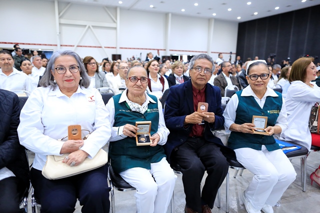 Por 55 años, se reconoció a Oscar Javier Álvarez Meléndez, médico especialista «C» del Hospital Civil de Victoria y a Alma Rosa Escobar Camacho, licenciada en Enfermería de la Oficina Central en Victoria, mientras que por 50 años recibieron su presea: Olga Castillo González, enfermera general titulada “A”; Distrito de Salud para el Bienestar VI en El Mante y Rubén Rodríguez Prado, jefe de sector en Programas de Salud en la Oficina Central de Victoria.