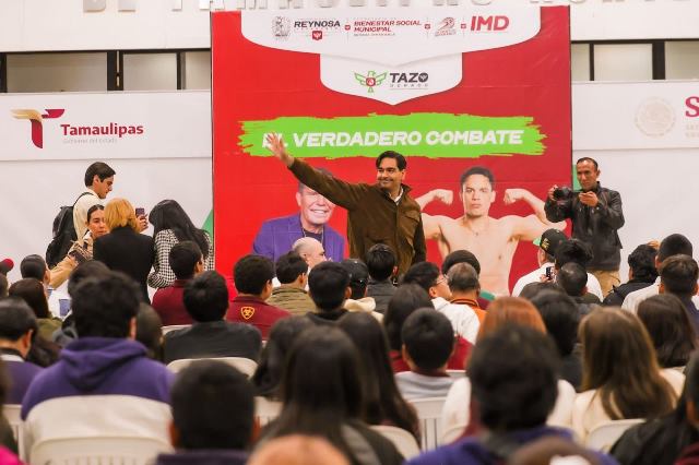 Reynosa, Tam (20-Abril-2026).- La Universidad Tecnológica de Tamaulipas Norte, UTTN, fue sede de la conferencia “El Verdadero Combate”, encabezada por la leyenda del boxeo mexicano Julio César Chávez, evento impulsado por el Presidente Municipal Carlos Peña Ortiz para motivar a la juventud reynosense, en la institución donde lo acompañó el Rector, Edgar Garza Hernández.