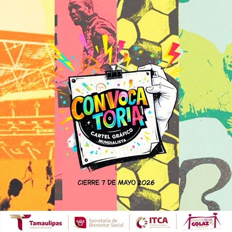 Ciudad Victoria, Tamaulipas (22-Abril-2026).- En el marco del Mundial Social 2026 y con el objetivo de impulsar el desarrollo artístico en la entidad, el Gobierno del Estado de Tamaulipas, a través de la Secretaría de Bienestar Social y el Instituto Tamaulipeco para la Cultura y las Artes (ITCA), mantiene abiertas dos convocatorias dirigidas a artistas gráficos, ilustradores, fotógrafos y creadores visuales en general, como parte del programa “Convivir es un golazo”.