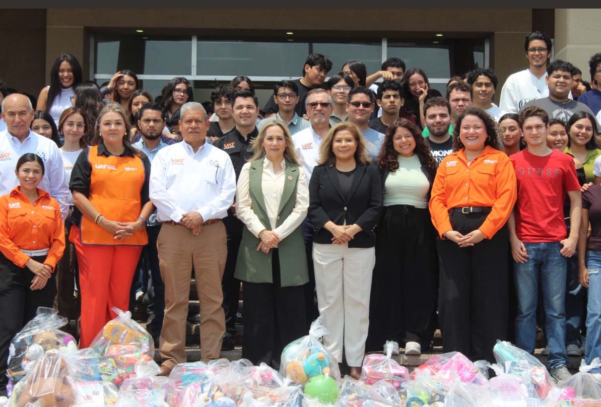 Ciudad Victoria, Tam (24-Abril-2026).- Como parte de las acciones de responsabilidad social y humanismo que distinguen a la Universidad Autónoma de Tamaulipas, la comunidad universitaria concretó una nueva jornada de apoyo a la niñez con la entrega de juguetes recaudados mediante la Colecta “Alegrando Corazones”, impulsada por Familia UAT y el Voluntariado UAT.