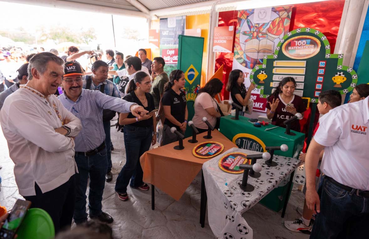 En los stands deportivos, los niños pudieron convivir con los jugadores y jugadoras profesionales de los equipos de la UAT, quienes, además, dieron consejos sobre cómo ser mejores en la técnica para el fútbol y el basquetbol. Estos lugares fueron visitados por el mandatario tamaulipeco y su esposa quienes al igual que los niños prácticaron las amenidades ofrecidas por los empleados de la Universidad.