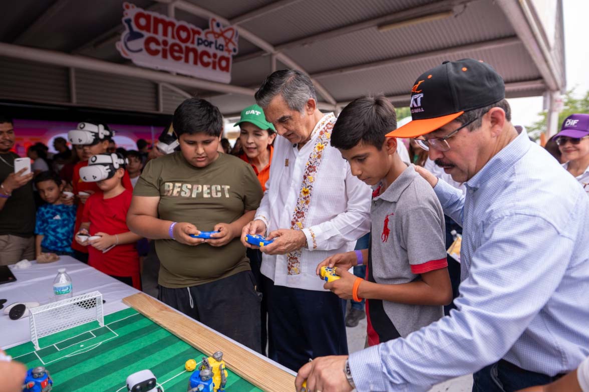 Cientos de niños, jóvenes y adultos disfrutaron de una calurosa tarde mitigada por las paletitas heladas, las botargas, los juegos, pero también el aprendizaje llevado por la UAT, donde los pequeños interactuaron con la realidad virtual y con la ciencia básica.