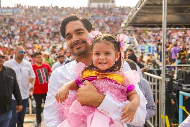 Reynosa, Tam (25-Abril-2026).- El Presidente Carlos Peña Ortiz presentó la tarde de hoy ante más de 15,000 personas el Show de Luli Pampín, ¡Bienvenidos, Juntos Otra Vez! celebrando el Día del Niño 2026 para todos los pequeños de Reynosa en un gran escenario, el Polideportivo, donde chicos y grandes disfrutaron de un magnífico espectáculo infantil al que asistieron como invitadas la Senadora Maki Esther Ortiz Domínguez y la Diputada Federal Casandra Priscila De los Santos Flores.