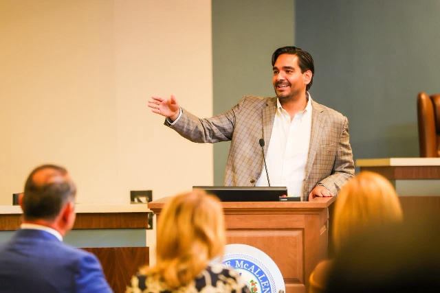 Reynosa, Tam (28-Abril-2026).- El Presidente Municipal de Reynosa, Carlos Peña Ortiz, reafirmó el interés de su Gobierno por fortalecer los lazos comerciales con McAllen, Texas, destacando las ventajas estratégicas de ser dos ciudades hermanas entre Estados Unidos y México y firmó una actualización del Hermanamiento con Javier Villalobos, Mayor de la vecina localidad.