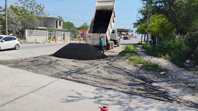Los trabajadores municipales laboraron con un total de 44 toneladas de mezcla asfáltica y 534 litros de emulsión, con la participación de 31 elementos distribuidos en 5 cuadrillas supervisados por el Secretario José Antonio Chávez Herrera.