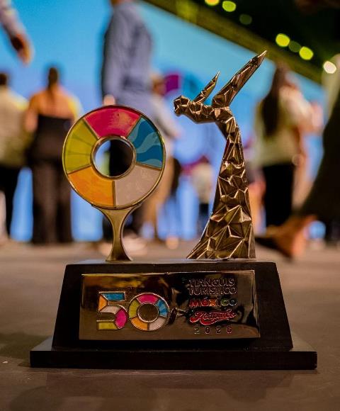 La presea otorgada por el Gobierno Federal que preside la presidenta de México, Claudia Sheinbaum Pardo, fue entregada por Josefina Rodríguez Zamora, secretaria federal de Turismo tras destacar la inversión de 917.59 millones de dólares en 79 proyectos turísticos.