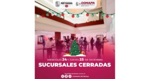 Anuncia COMAPA cierre de cajas los días 24 y 25 de diciembre con motivo de Navidad